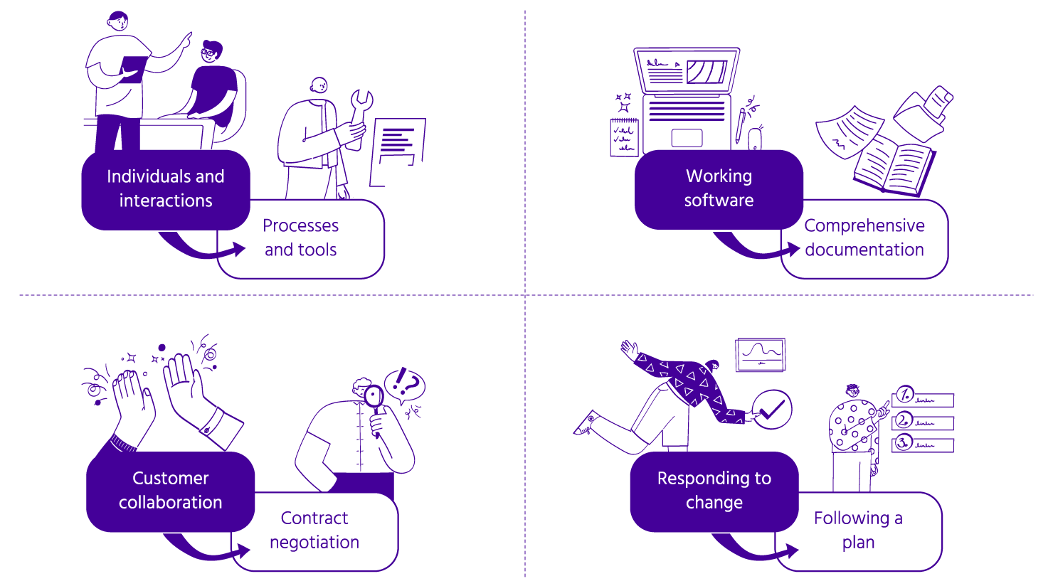 Arvot ovat [ketterän ohjelmistokehityksen](https://agilemanifesto.org/) ytimessä ja ohjaavat periaatteita sekä käytäntöjä, jotka mahdollistavat tiimien toimittaa korkealaatuisia, asiakaskeskeisiä ratkaisuja tehokkaasti. Tässä yhteydessä sukellamme ketterän lähestymistavan perustana oleviin keskeisiin arvoihin ja niiden vaikutukseen ohjelmistokehitysprosessiin.