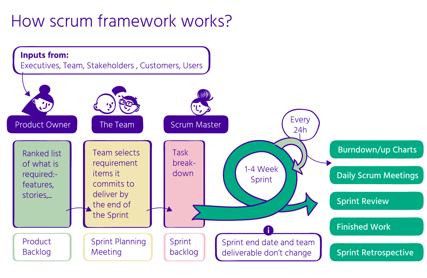 <figure><img src="https://1233727392-files.gitbook.io/~/files/v0/b/gitbook-x-prod.appspot.com/o/spaces%2FM5V9Taa7W4HDSvphGKxE%2Fuploads%2Fgit-blob-944a769da4777d0a1eb59b497a1cef36d989d7a4%2FAgileXR_GitBook_Visual%205%402x.png?alt=media" alt=""><figcaption><p><a href="https://www.altexsoft.com/whitepapers/agile-project-management-best-practices-and-methodologies/">Miten Scrum-kehys toimii</a></p></figcaption></figure>