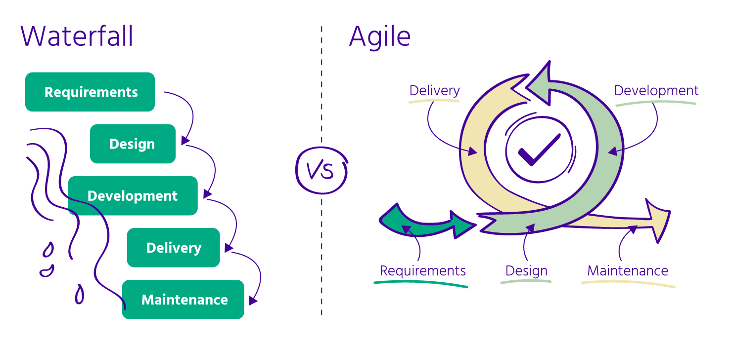 <figure><img src="https://1233727392-files.gitbook.io/~/files/v0/b/gitbook-x-prod.appspot.com/o/spaces%2FM5V9Taa7W4HDSvphGKxE%2Fuploads%2Fgit-blob-f9e948479d20fbe8d21d1bb69196532c4dd782e2%2FAgileXR_GitBook_Visual%203%402x.png?alt=media" alt=""><figcaption><p><a href="https://apifuse.io/blog/agile-vs-waterfall-methodology/">Vesiputous vs Ketterä</a></p></figcaption></figure>